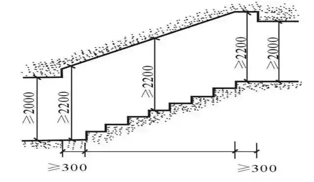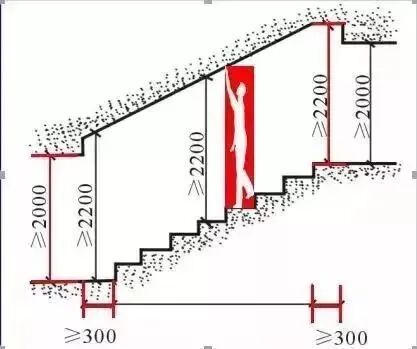 确定楼梯段上的净空高度时,楼梯段的计算范围应从楼梯段最前和最后踏步前缘分别往外300mm算起。