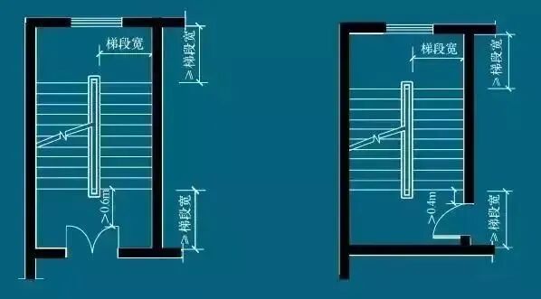 封闭式楼梯间楼层平台一般与中间休息平台等宽,但是必须满足规范规定的局部尺寸的要求。
