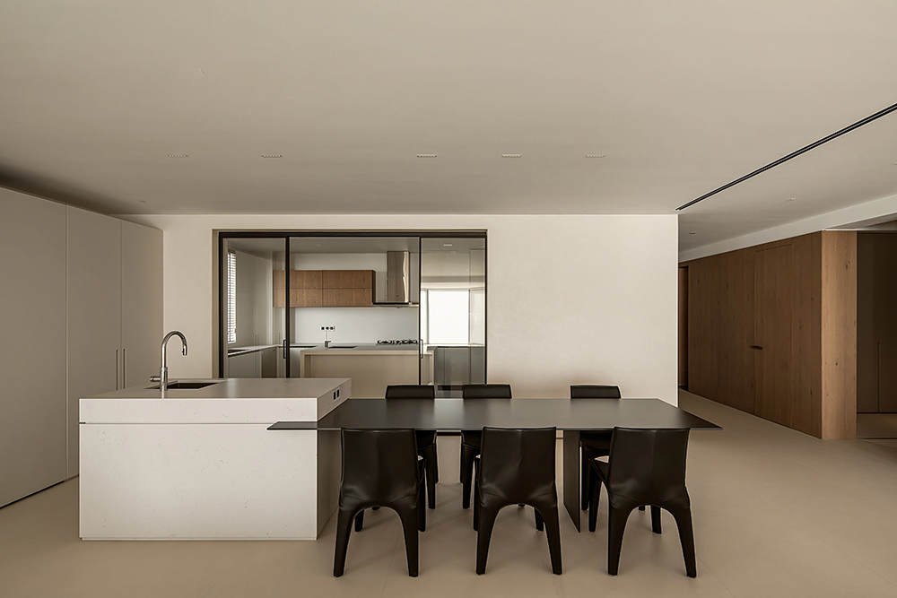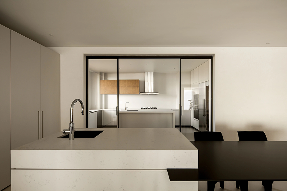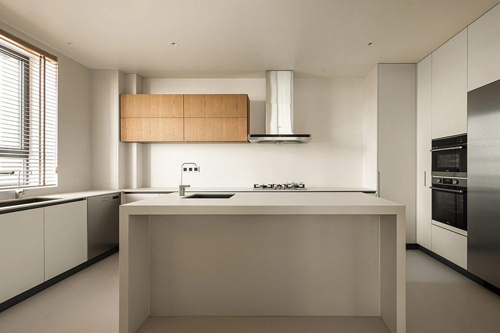以岛台为中心,将家人拉拢汇集在此,细语轻言、谈笑欢声都被研磨成生活的调料。
