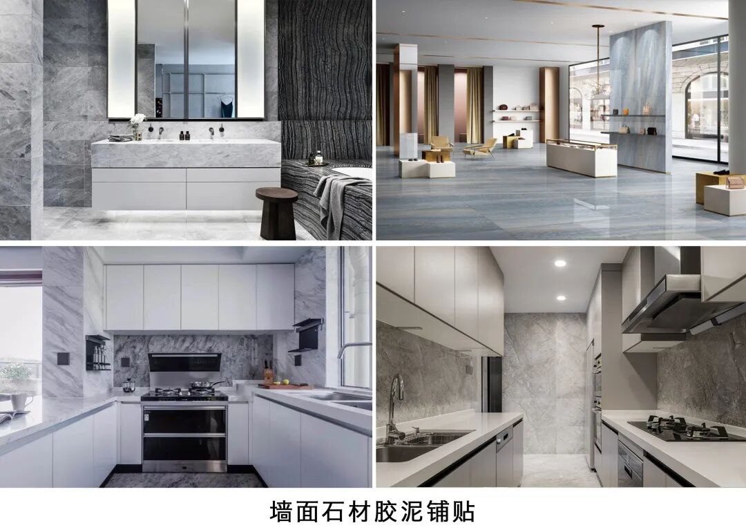 墙面胶泥铺贴常用于卫生间墙面以及厨房墙面因为这两个区域比较潮湿所以最好不用干挂及点挂结构