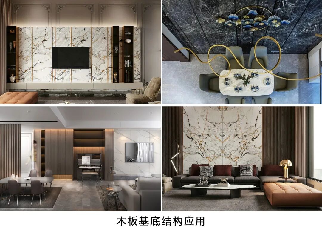 木板基底结构常见于欧式/中式造型背景墙如玄关、电视背景等空心砖、泡沫砖宜用木板基底结构