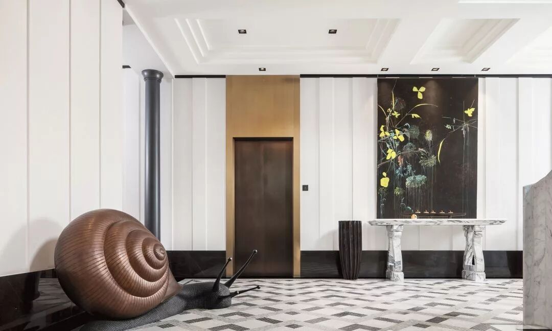 Robert Kuo的雕塑品‘Snail’(蜗牛)置于空间,表达归家一刻的‘慢’与‘闲逸’,也更加突出隐贵气质。