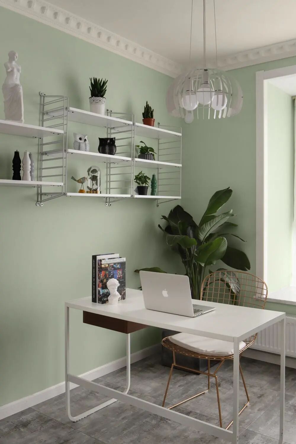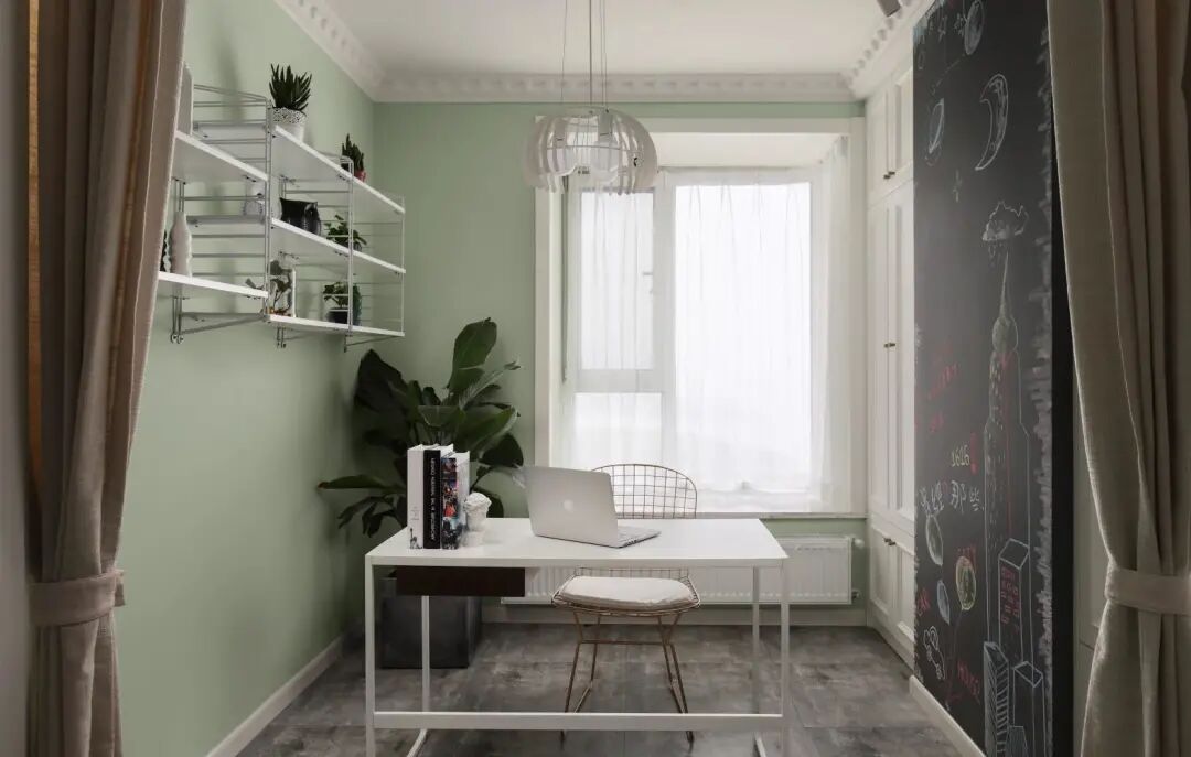 书房的墙面也是小清新的乳胶漆,与白色、炭灰色相搭配,视觉效果也很不错