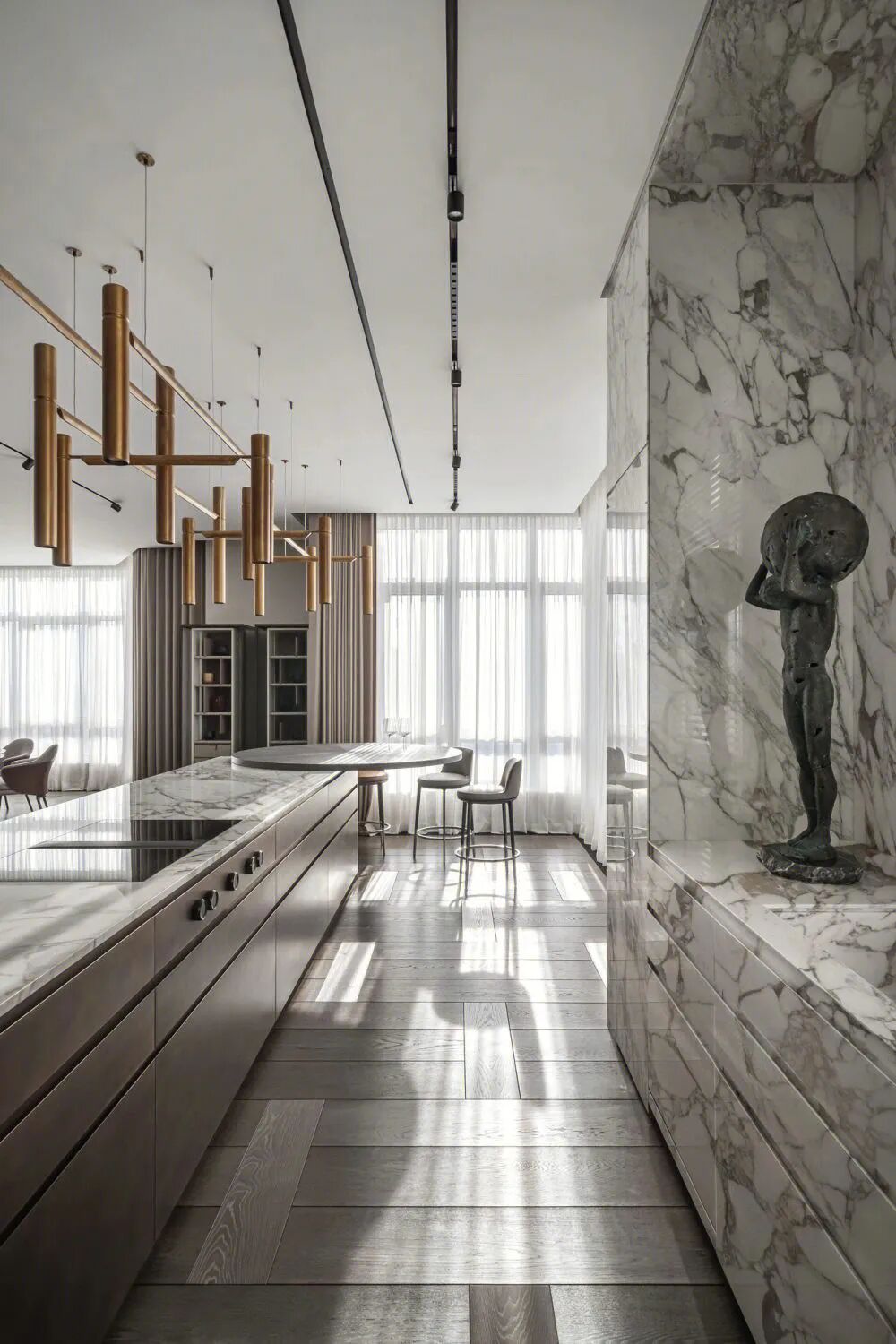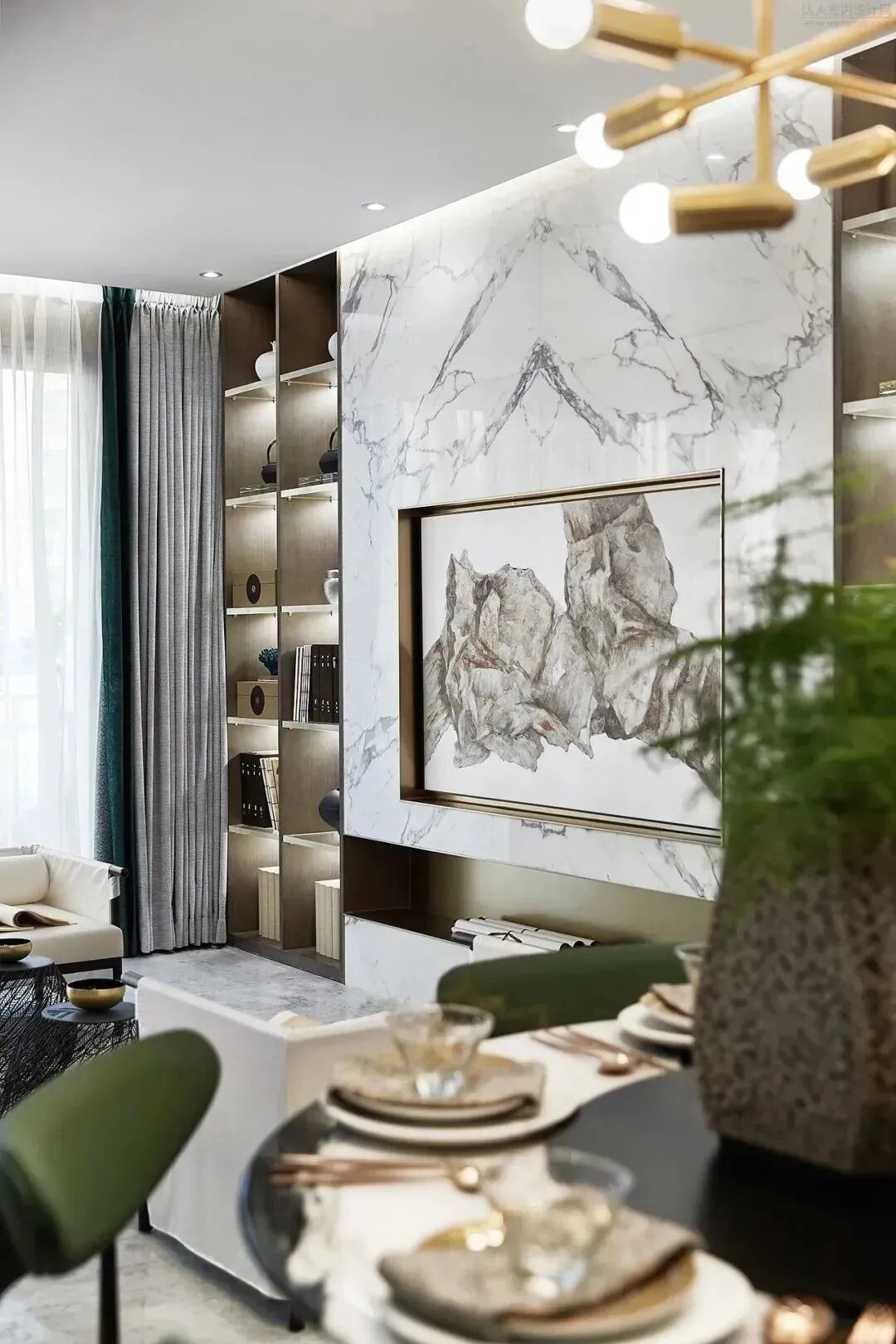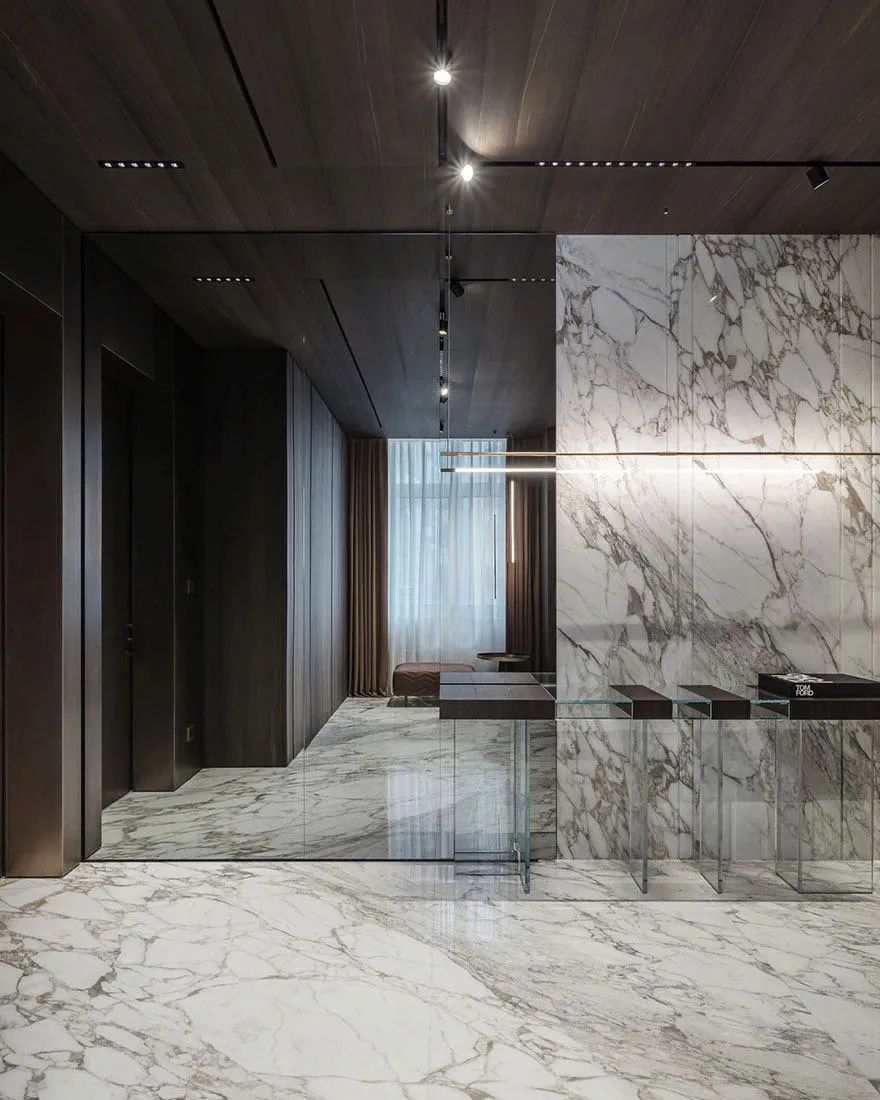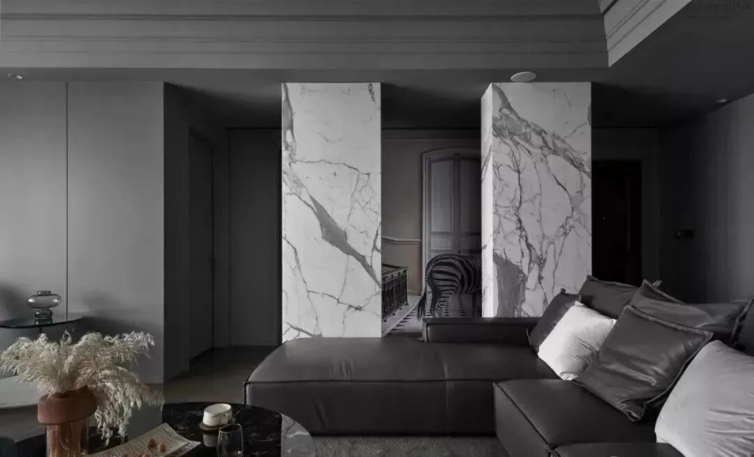 鱼肚金源于意大利的珍稀石材,带有深灰色/金黄色网状脉纹。鱼肚金个性鲜明、存在感极强,质量高而产量少,优质的鱼肚金是很多设计师梦寐以求的石材,其俨然就是卡拉拉矿产中最高身价的奢侈品。