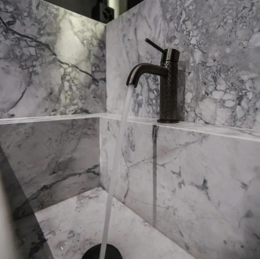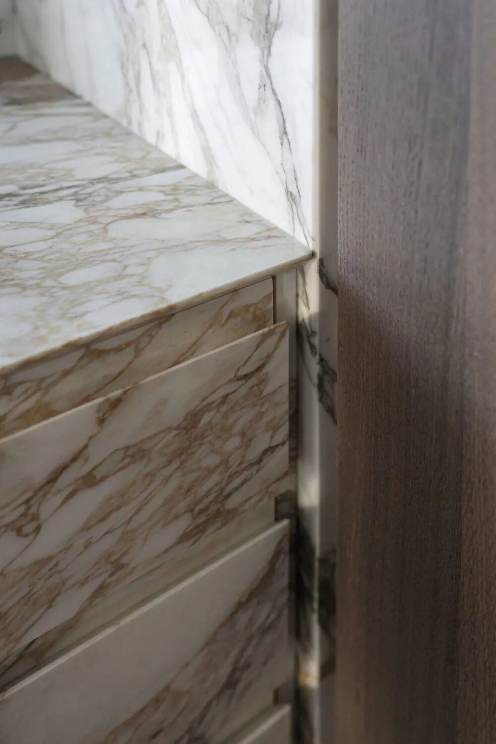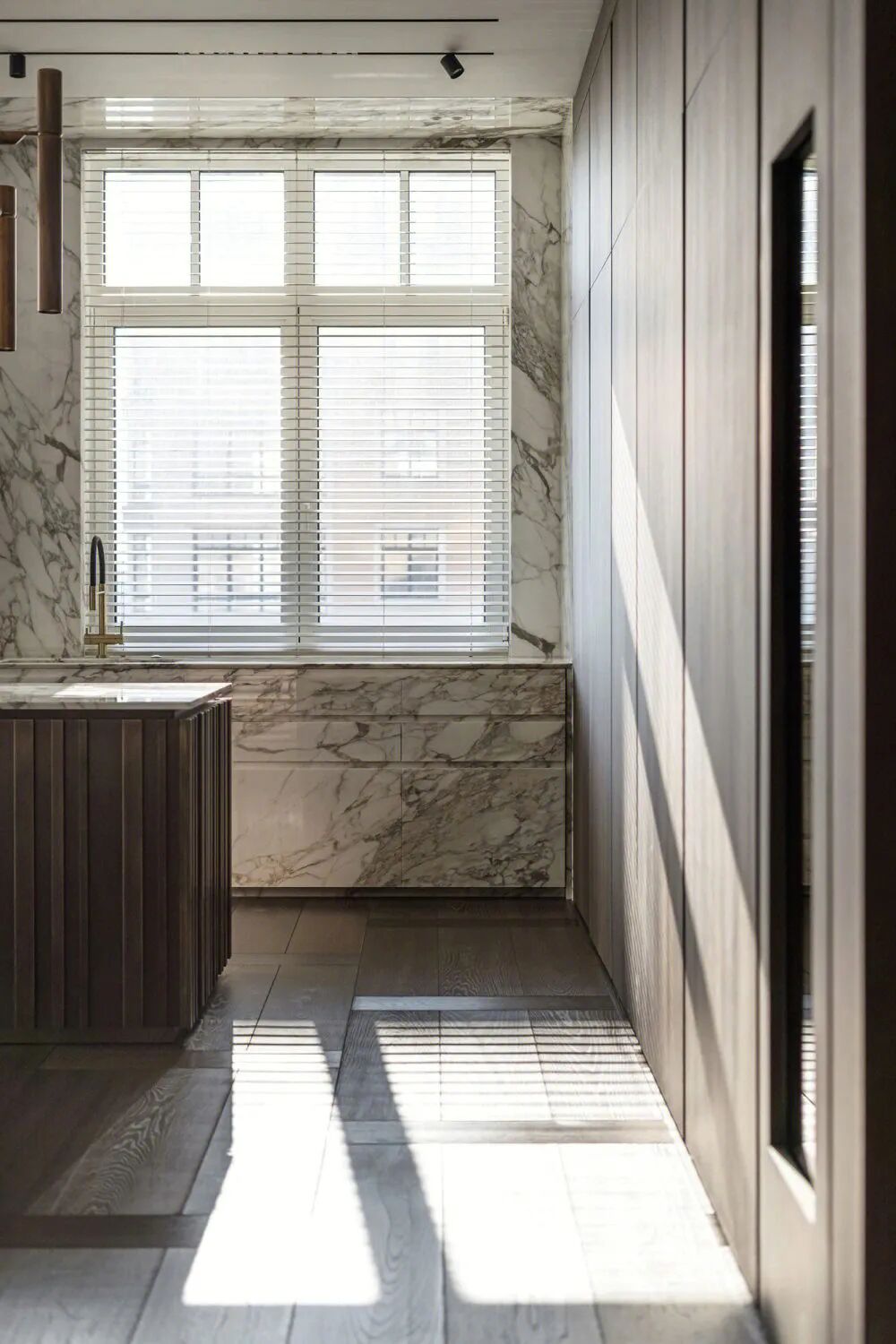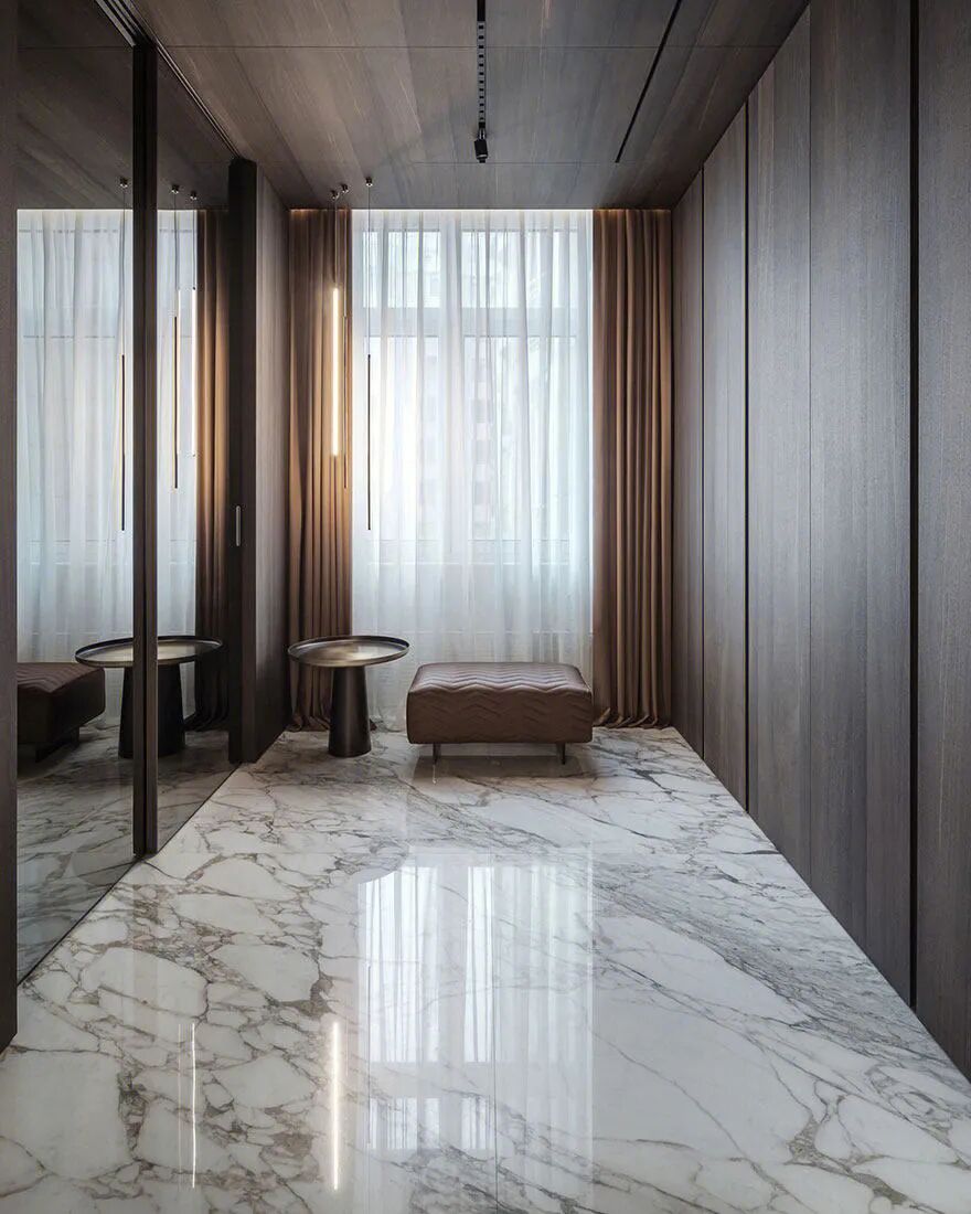 鱼肚金源于意大利的珍稀石材,带有深灰色/金黄色网状脉纹。鱼肚金个性鲜明、存在感极强,质量高而产量少,优质的鱼肚金是很多设计师梦寐以求的石材,其俨然就是卡拉拉矿产中最高身价的奢侈品。