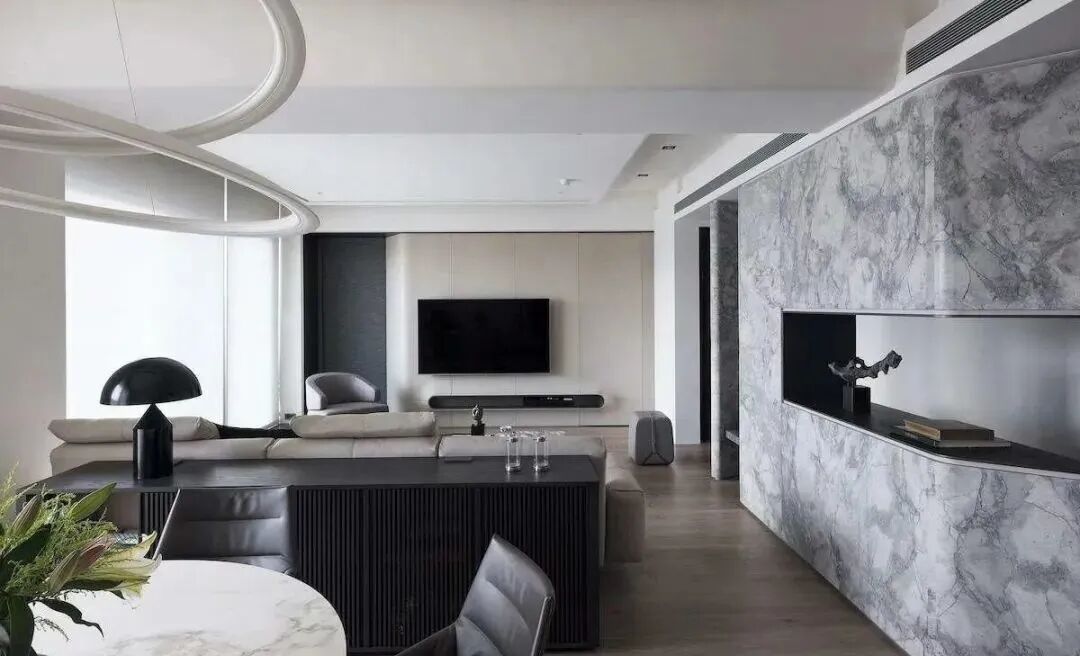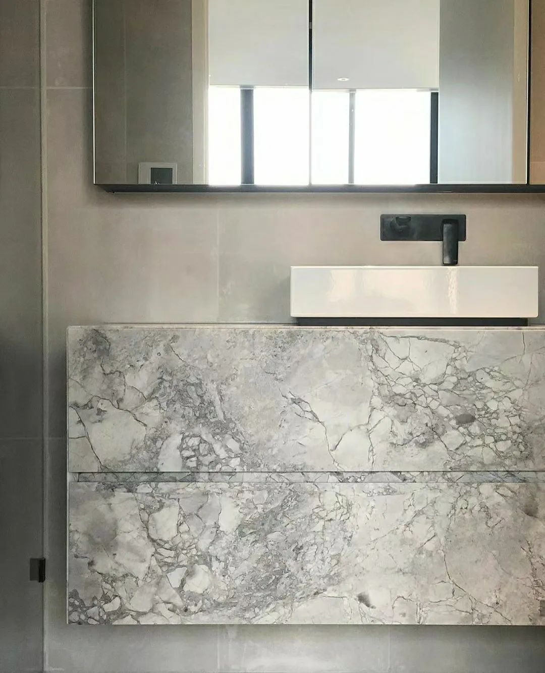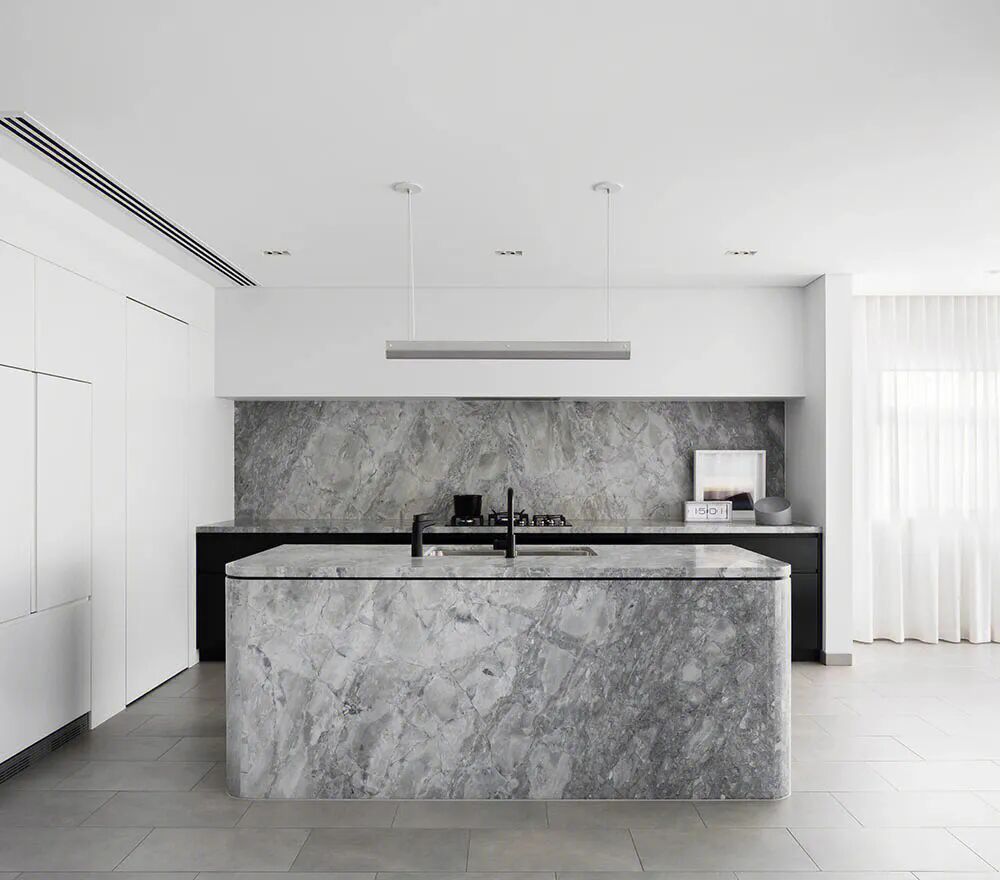 鱼肚灰大理石产自意大利,是一款白色偏灰的天然石材产品。层次丰富,纹理大气、豪放、粗旷,更偏向北欧风。所以可以搭配白色,灰色,黑色,灰绿色等。