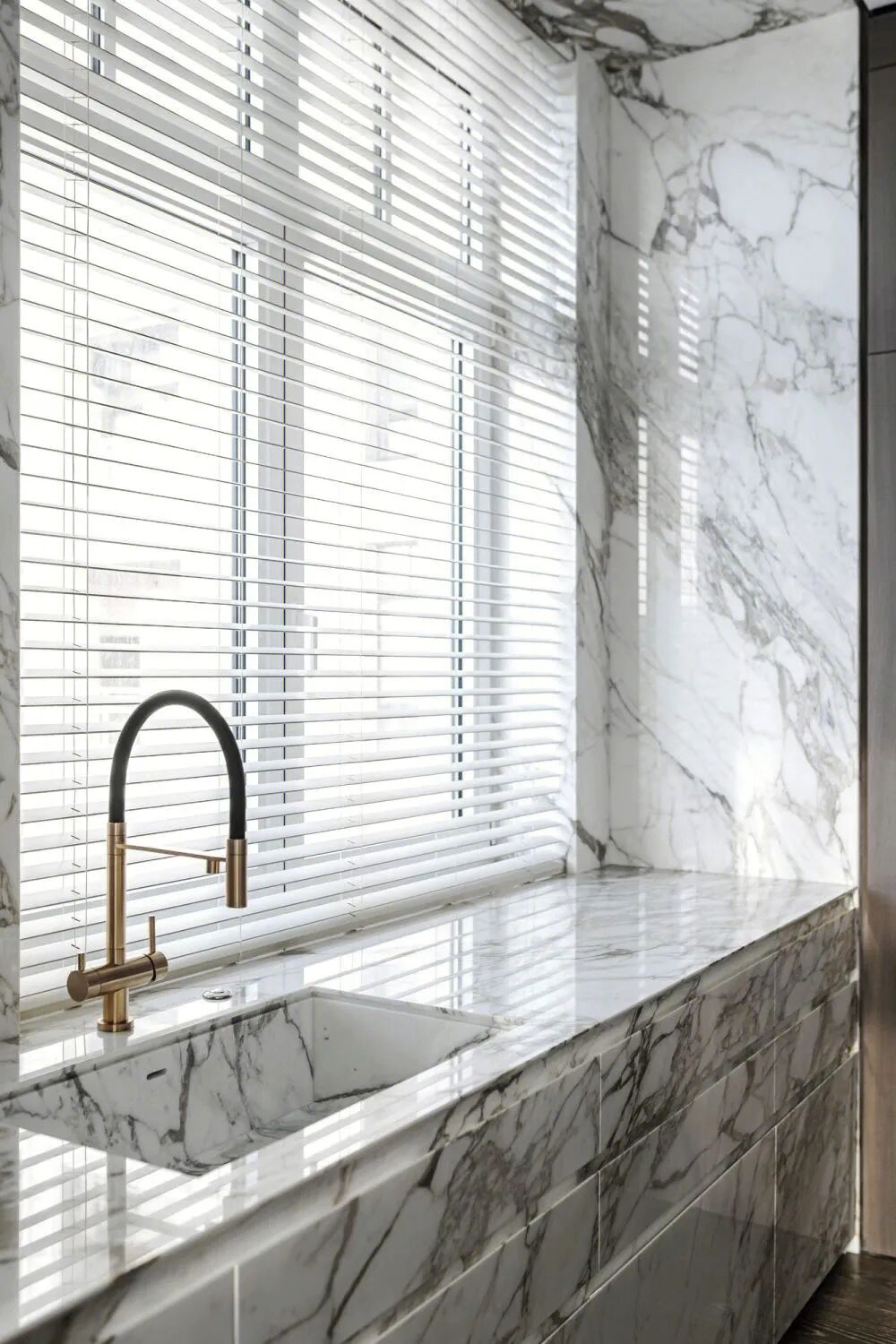 鱼肚白是意大利开采出的一种白色大理石,其颜色近似于鱼腹部颜色,装饰空间时所营造出的空间氛围与清晨微曦时的感受有异曲同工之妙:仿佛如晨光微曦时东方神秘的天际。