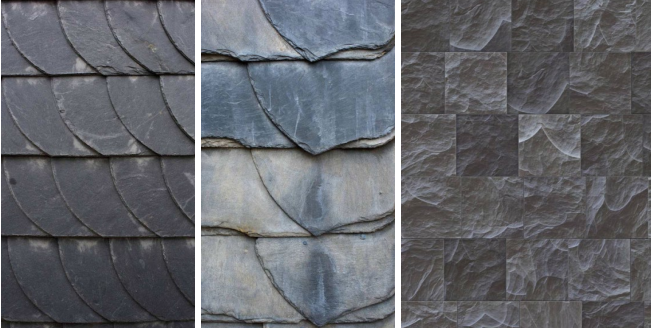 板岩最常用于室外景观铺地和文化石墙面铺贴,同时板岩瓦也广泛应用于建筑屋面铺设。