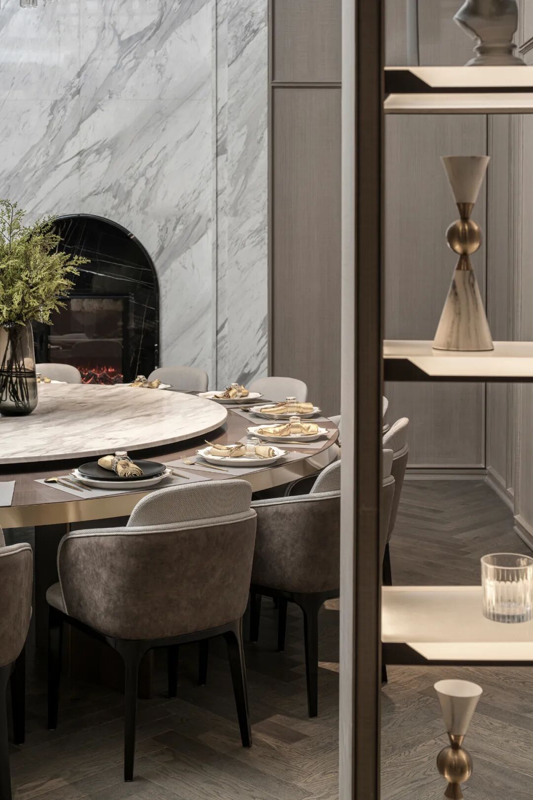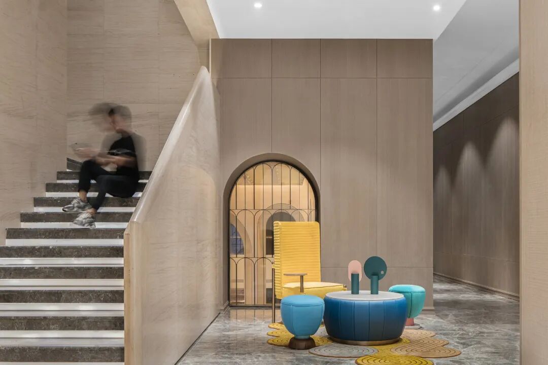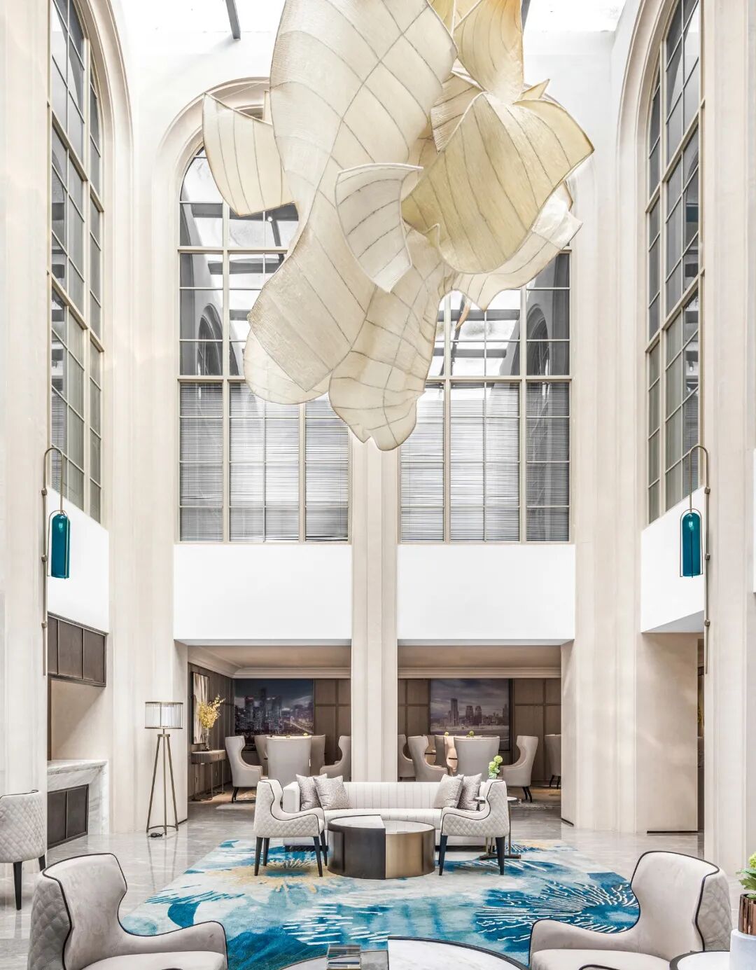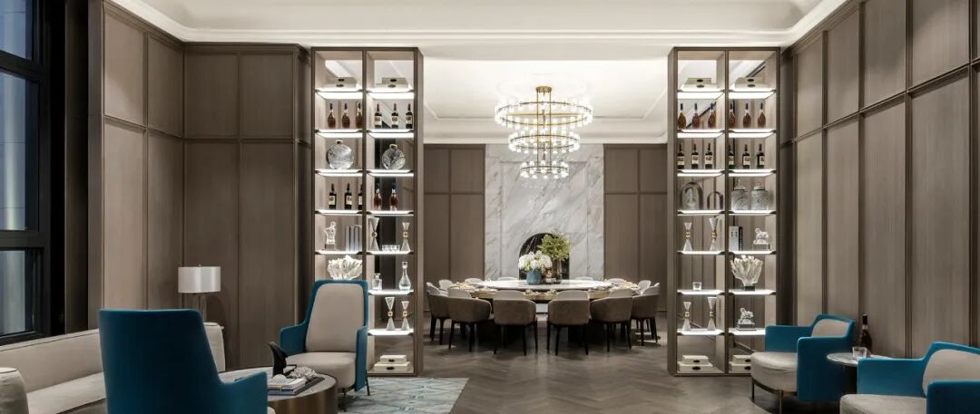 建筑风格以当代的审美视角重新诠释 Art Deco 美学,并延续至室内。设计在理性的、系统性的洞察下,避免过于复杂的肌理和装饰,灵活运用简化的手法,在保留优雅恢弘的雕塑感的同时,令空间整体威而不严,美且多情。