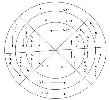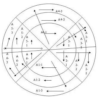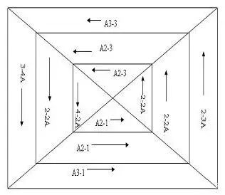 连续拼接花纹编号,除了要求方向、楼层、部位顺序号外,因装饰钥匙石材花纹连续,通过多块石材的拼接成为一个大的花纹图案,所以在工厂加工后,就要对花纹进行人为的拼接,并做好编号,这种编号要画出花纹与编号图。(如:下图)