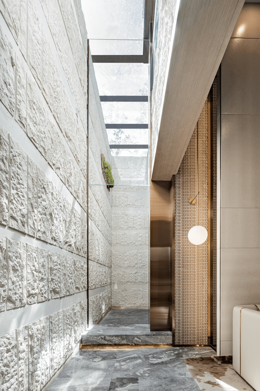 2)墙、柱同时选择石材饰面时应注意整体分块、分缝的协调统一,相同材质的墙、柱两者无论横向或竖向分缝都应保持基本相同的模数。